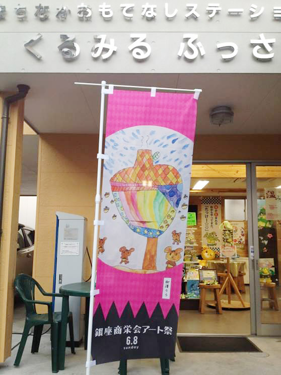 6/8(日)イベント当日、銀座通りに飾られるのぼり旗のイラストを