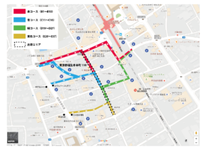 ●車の方は混雑しますので下記のコースを色わけした搬入経路に従って下さい。